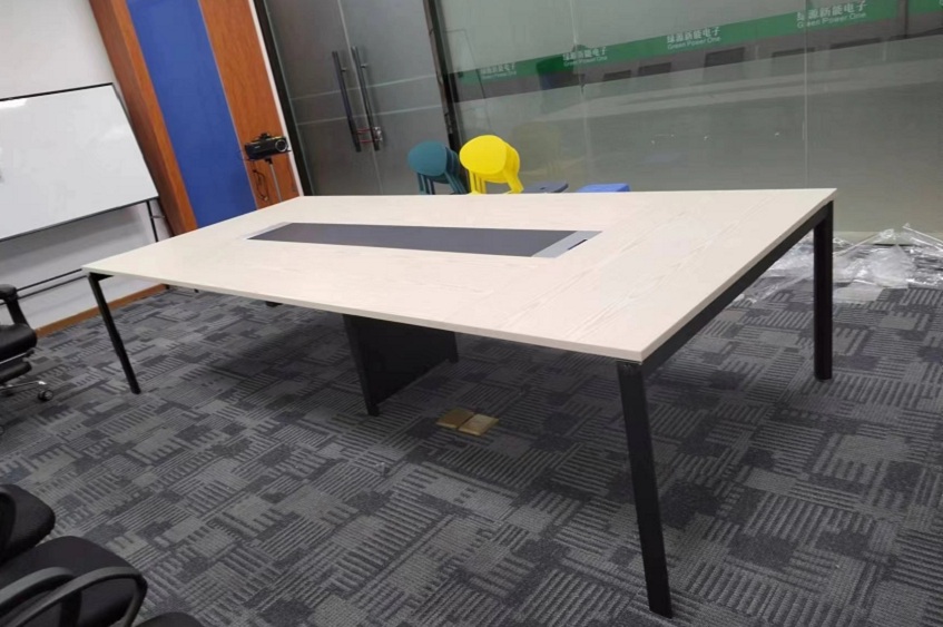會議桌椅方通腳架作為支撐,簡單的結構不僅僅讓會議室結構變得更加的穩固,而且也不失美觀,臺面板的顏色還是延續了職員辦公桌面上的木紋色,整個方案的色調都是統一的,會議桌的腳架選擇了黑色的鋼架,黑白灰的效果也讓整個方案變得更加耐看。